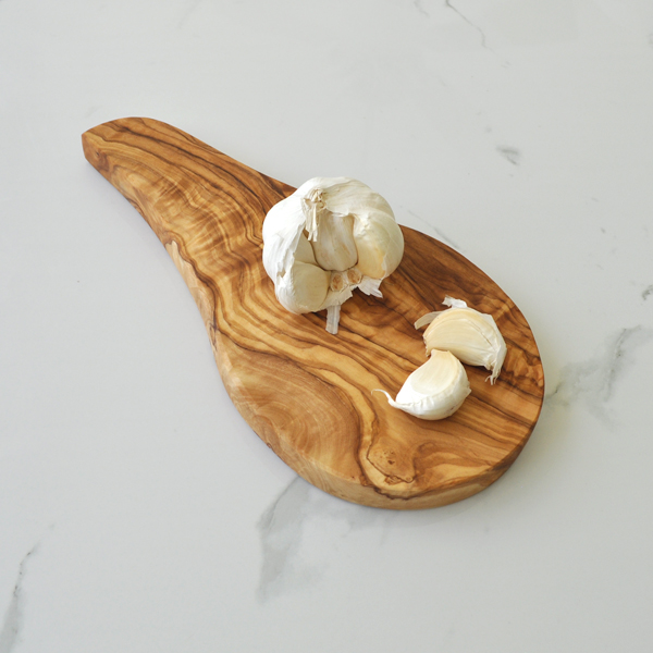 This beautiful olive wood garlic board is perfect for cutting garlic on, therefore keeping the smell from your other boards. This board measures approximately 10″ total length and is 4.3″ wide.